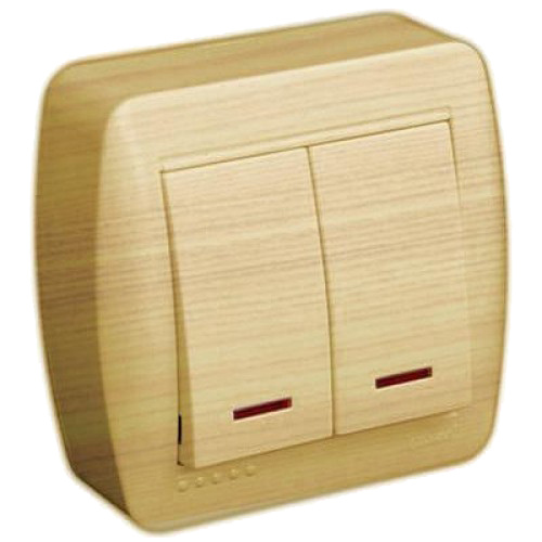 Выключатель двойной с подсветкой «DEMET», клен предназначен для использования в бытовых или аналогич..